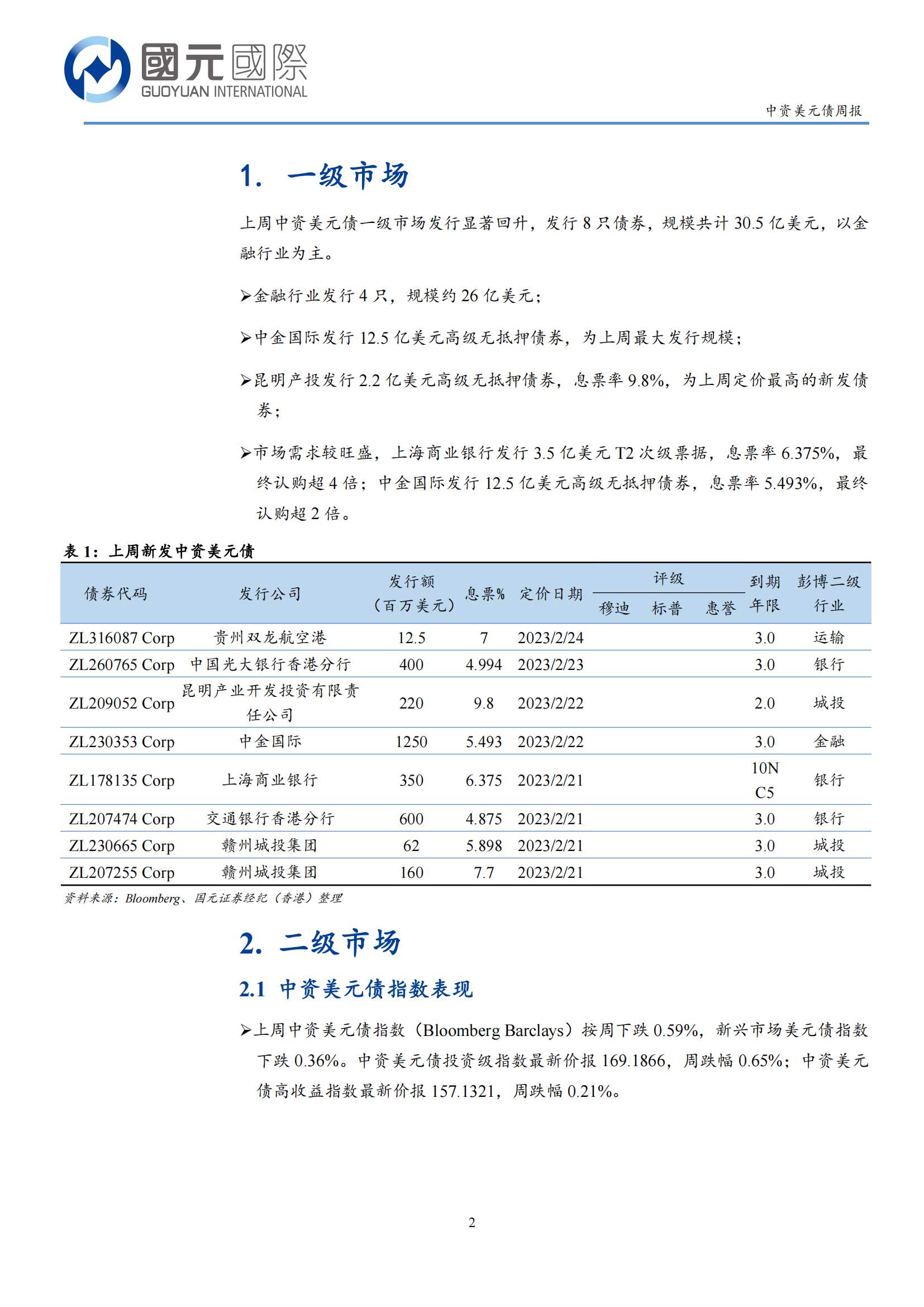 国元国际:上周中资美元债新发显著回升,二级市场震荡走弱