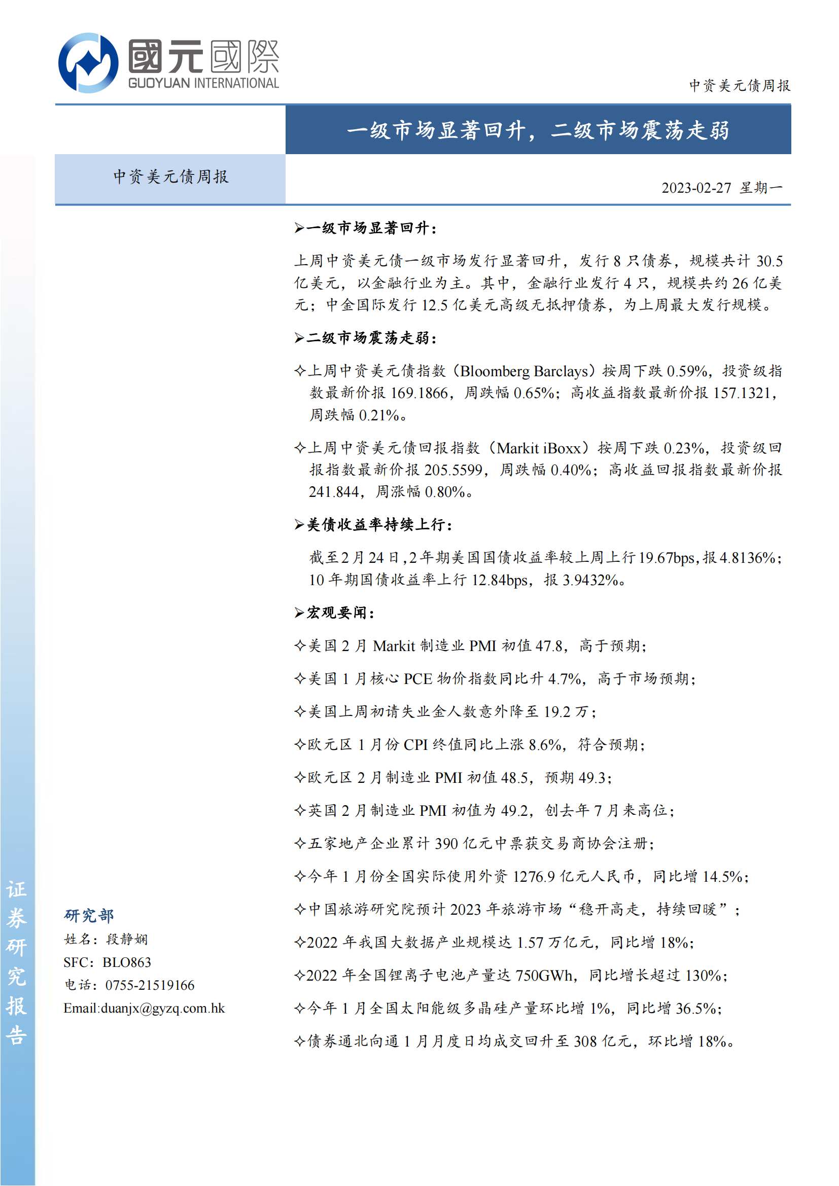 本文来自“国元国际”,作者:段静娴,原标题《一级市场显著回升,二级市场震荡走弱》